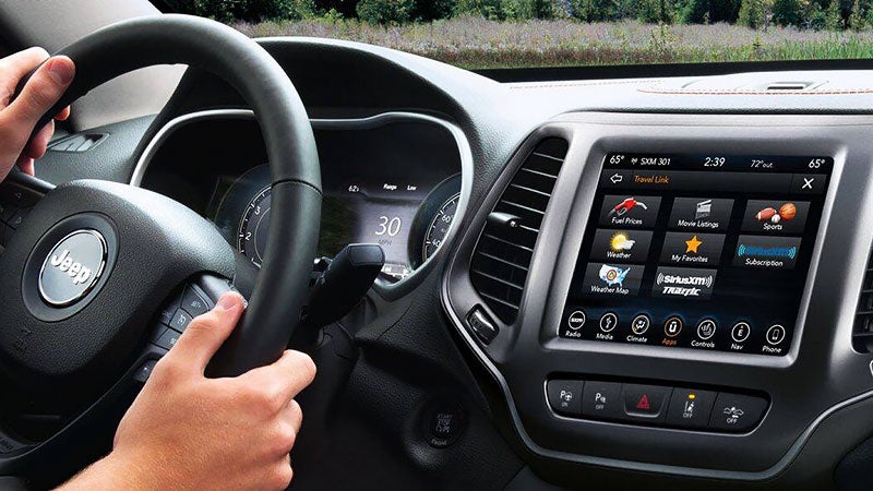 If you're looking for a Jeep level of confidence on slick roads and off of them, be sure to grab a model equipped with one of the famous Jeep Active Drive four-wheel-drive systems. These enhanced drivetrains allow you to tackle tougher roads, thanks to gear such as the Selec-Terrain traction management system with Rock Mode. For the most confident off-roading crossover, choose the Cherokee Trailhawk. The new Cherokee makes itself the ultimate adventure-mobile by also offering a best-in-class 4,500-pound towing capacity. You can monitor your Cherokee's performance with the available Off-Road Pages programs, accessible through your cabin's touch screen.